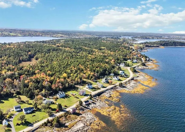 海辺のOceanfront Holiday Home Minutes From Lunenburg Blue Rocksは、宿泊施設から歩いて25分くらい離れたザ・オーブンズ・パークなどの近くの観光スポットに近接しています。 ヴィラに無料の専用駐車場と海の景色を望むテラスがあります。